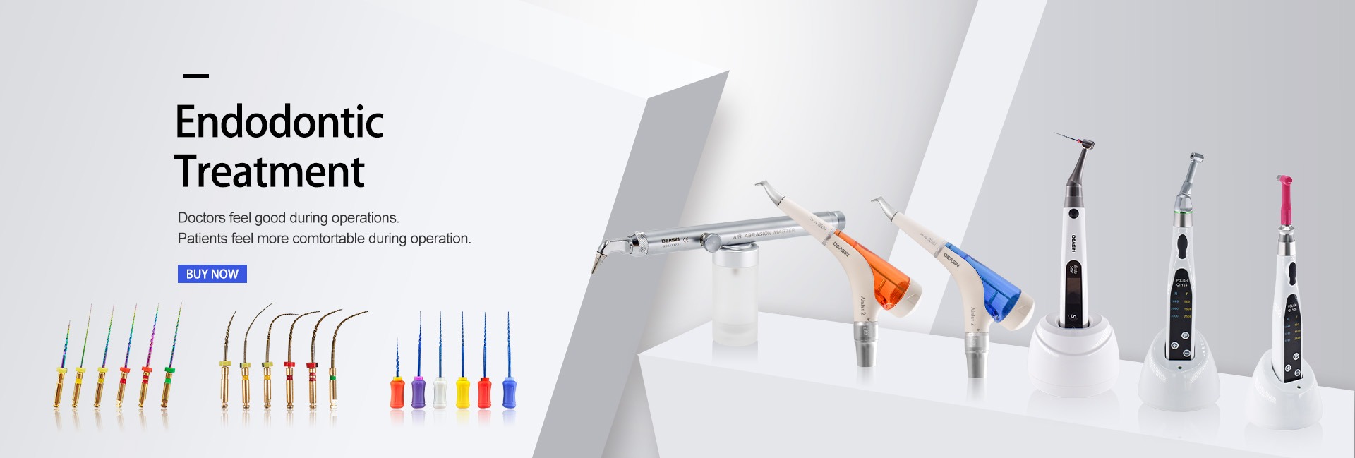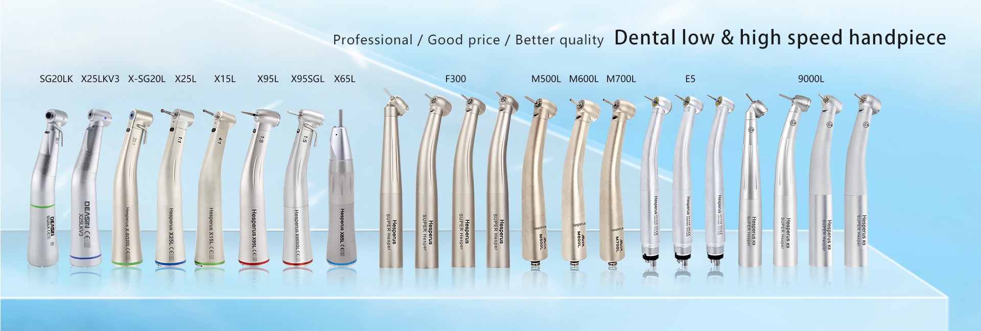 Prodotti principali: Manipolo ad alta velocità e bassa velocità, lenti dentarie e faro, profia dell'aria, localizzatore apicale e motore Endo, micromotore